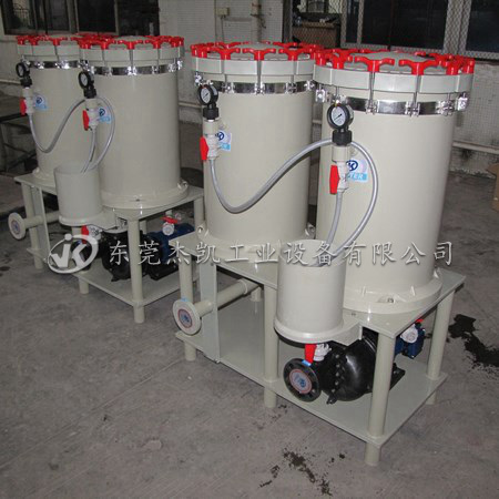處理、金屬精飾、PCB蝕刻設(shè)備、制藥環(huán)保等,其主要作用是過濾化學(xué)溶液,能去除這些溶液中的不溶性顆粒雜質(zhì)。過濾機(jī)是