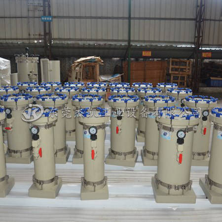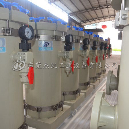 采用循環(huán)過濾時(shí),首先要決定每小時(shí)溶液過濾幾次。比如,溶液體積1000L,過濾量1000L/h,就是每小時(shí)溶液過濾l次。強(qiáng)堿性溶液每小時(shí)溶液過濾1~2次即可,比如脫脂溶液和堿性鍍鋅溶液。一方面這些溶液過濾要求低,另一方面這些溶液粘度大過濾困難。酸性銅和鍍鎳每小時(shí)溶液要過濾3~5次?;瘜W(xué)鍍鎳溶液要每小時(shí)溶液過濾10次,以減少固體顆粒使溶液分解的危險(xiǎn)。在按每小時(shí)溶液過濾幾次選擇過濾機(jī)容量時(shí),要首先搞清楚過濾機(jī)標(biāo)的清水流量是指泵的最大流量還是過濾機(jī)的最大流量。而且清水流量并不是溶液流量,因?yàn)閮烧呙芏群驼扯炔煌?。過濾機(jī)的實(shí)際過濾量還和管路阻力和過濾介質(zhì)污染情況有關(guān)。藥水供應(yīng)商會(huì)推薦每小時(shí)溶液過濾次數(shù),但每個(gè)企業(yè)產(chǎn)品要求不同,這個(gè)值會(huì)變化,藥水供應(yīng)商有時(shí)會(huì)推薦較高的值以減少溶液要面對的問題。