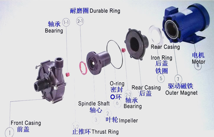 2耐腐蝕磁力泵軸承的冷卻和潤滑是靠被輸送的介質(zhì),禁止空轉(zhuǎn),同時應(yīng)避免在工作中途停電后再啟動時所造成時空載運(yùn)轉(zhuǎn)。