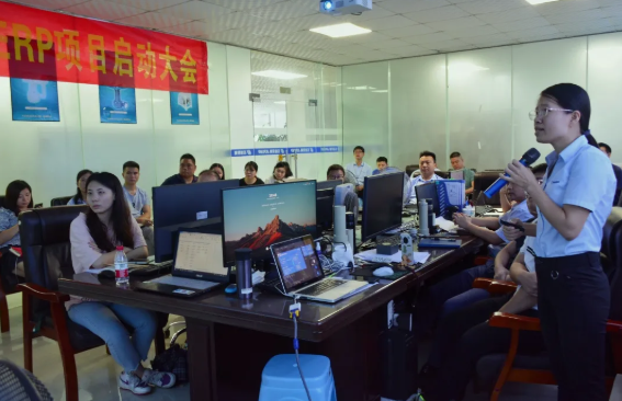 ERP實施小組組長容川作為本次會議的主持人介紹了金蝶ERP項目的背景、目標、規(guī)劃、價值和組織情況,并明確了項目實施計劃節(jié)點與策略。以信息化建設(shè)的核心為目標,使企業(yè)數(shù)據(jù)得以精細化管控,建立業(yè)務(wù)部門之間協(xié)同體系。使原有碎片化的信息關(guān)聯(lián)起來,通過電子表格變成信息集成化,以此來提高公司整體運作速度;采購、生產(chǎn)計劃的精確投放;降低零部件庫存成本;實現(xiàn)傳統(tǒng)管理到精細化管理的轉(zhuǎn)變。