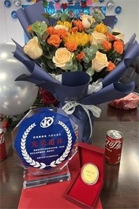 退休儀式上,劉總助為曾師傅獻(xiàn)上“忠誠(chéng)員工金牌”、“退休紀(jì)念獎(jiǎng)杯”以及鮮花。在全體員工的祝福下,曾師傅正式光榮退休。