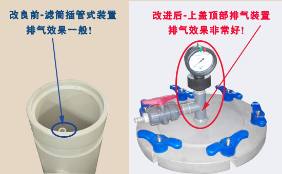 杰凱過濾機(jī)改進(jìn)方案是把原來插管式空氣排放裝置改為過濾機(jī)上蓋頂部,通過過濾機(jī)上蓋頂部的空氣排放裝置,這樣就能很好解決過濾機(jī)的空氣排放問題了。
