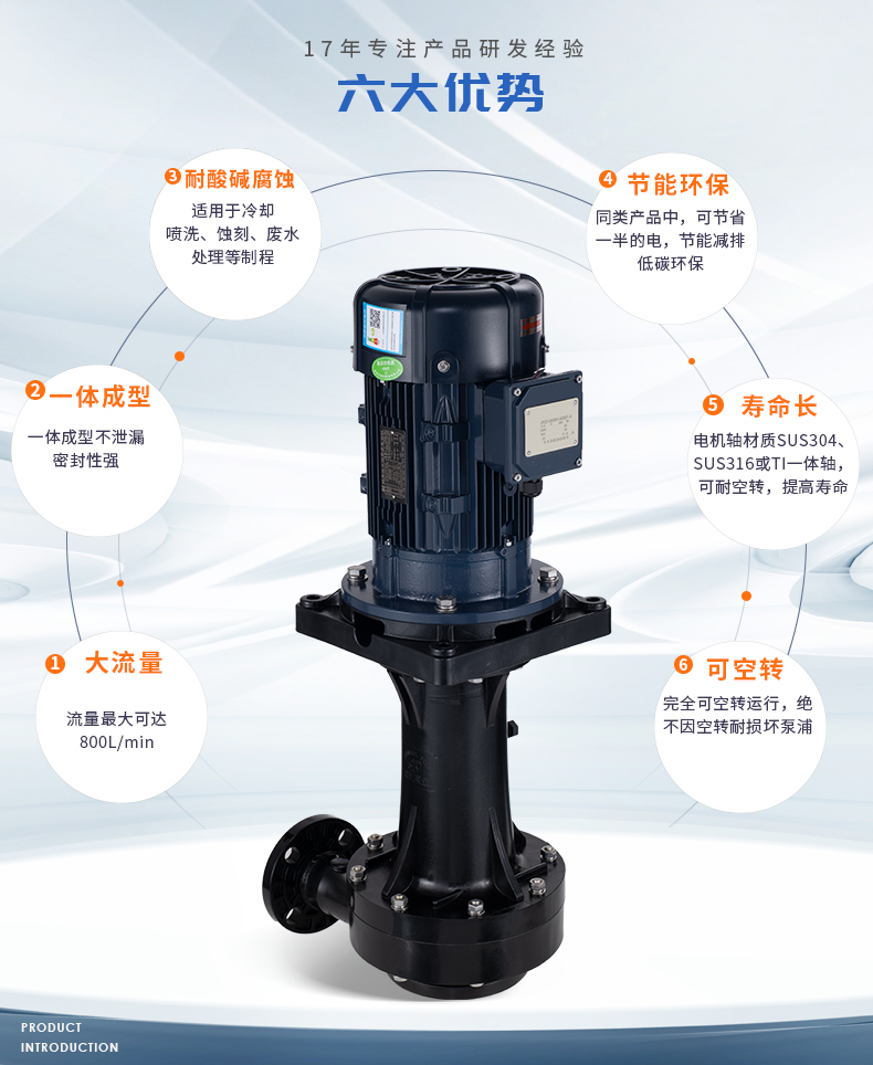 1、采用進(jìn)口/上市企業(yè)優(yōu)質(zhì)原生料,大幅提高產(chǎn)品強(qiáng)度及耐腐蝕性; 2、特制的桿式軸封,配合SUS金屬或TI金屬一體軸,可耐空轉(zhuǎn)、防腐蝕,提高電機(jī)壽命; 3、創(chuàng)新型葉輪設(shè)計(jì),一體成型工藝,效率高、性能穩(wěn)定、壽命長; 4、獨(dú)特的反葉輪設(shè)計(jì),減少水力損失,杜絕泄漏; 5、完全可空轉(zhuǎn)運(yùn)行,絕不因空轉(zhuǎn)而損壞泵浦; 6、適合各種酸堿液體循環(huán),適用于冷卻、噴洗、蝕刻、廢水處理等制程。