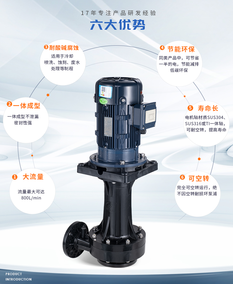 1、采用進(jìn)口/上市企業(yè)優(yōu)質(zhì)原生料,大幅提高產(chǎn)品強(qiáng)度及耐腐蝕性; 2、特制的桿式軸封,配合SUS金屬或TI金屬一體軸,可耐空轉(zhuǎn)、防腐蝕,提高電機(jī)壽命; 3、創(chuàng)新型葉輪設(shè)計(jì),一體成型工藝,效率高、性能穩(wěn)定、壽命長(zhǎng); 4、獨(dú)特的反葉輪設(shè)計(jì),減少水力損失,杜絕泄漏; 5、完全可空轉(zhuǎn)運(yùn)行,絕不因空轉(zhuǎn)而損壞泵浦; 6、適合各種酸堿液體循環(huán),適用于冷卻、噴洗、蝕刻、廢水處理等制程。