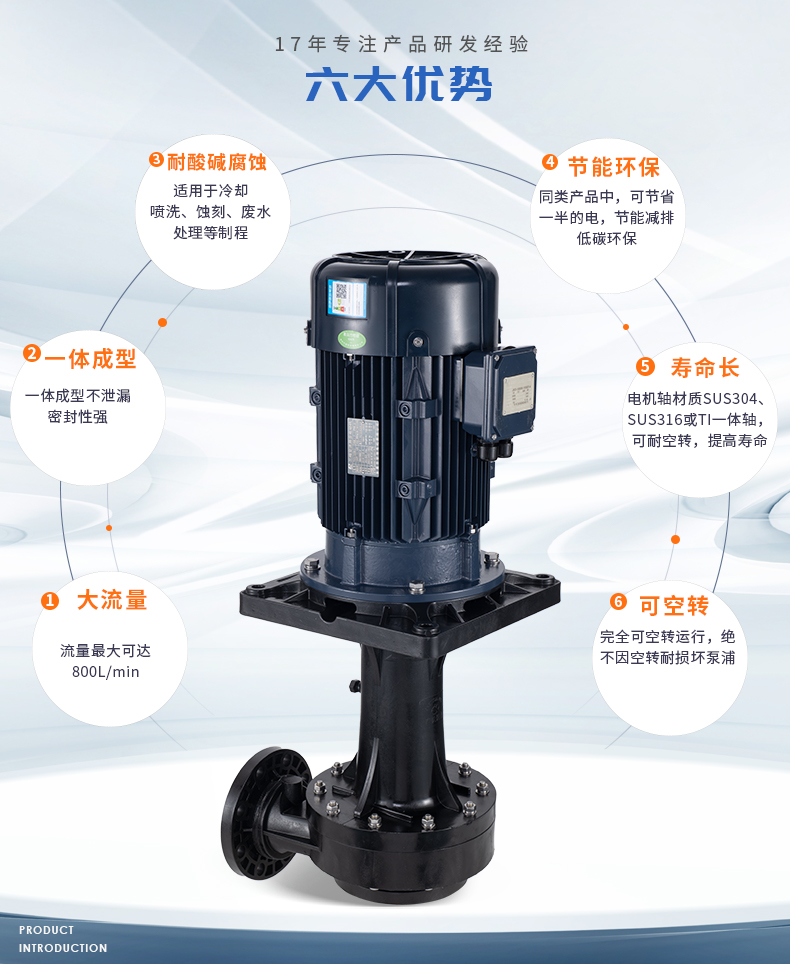 1、采用進(jìn)口/上市企業(yè)優(yōu)質(zhì)原生料,大幅提高產(chǎn)品強(qiáng)度及耐腐蝕性; 2、特制的桿式軸封,配合SUS金屬或TI金屬一體軸,可耐空轉(zhuǎn)、防腐蝕,提高電機(jī)壽命; 3、創(chuàng)新型葉輪設(shè)計(jì),一體成型工藝,效率高、性能穩(wěn)定、壽命長(zhǎng); 4、獨(dú)特的反葉輪設(shè)計(jì),減少水力損失,杜絕泄漏; 5、完全可空轉(zhuǎn)運(yùn)行,絕不因空轉(zhuǎn)而損壞泵浦; 6、適合各種酸堿液體循環(huán),適用于冷卻、噴洗、蝕刻、廢水處理等制程。