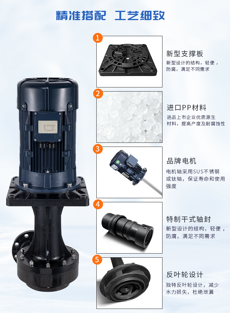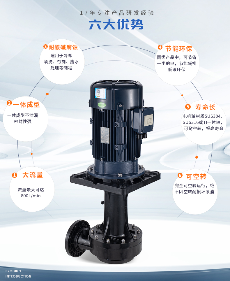 1、采用進(jìn)口/上市企業(yè)優(yōu)質(zhì)原生料,大幅提高產(chǎn)品強(qiáng)度及耐腐蝕性; 2、特制的桿式軸封,配合SUS金屬或TI金屬一體軸,可耐空轉(zhuǎn)、防腐蝕,提高電機(jī)壽命; 3、創(chuàng)新型葉輪設(shè)計,一體成型工藝,效率高、性能穩(wěn)定、壽命長; 4、獨特的反葉輪設(shè)計,減少水力損失,杜絕泄漏; 5、完全可空轉(zhuǎn)運(yùn)行,絕不因空轉(zhuǎn)而損壞泵浦; 6、適合各種酸堿液體循環(huán),適用于冷卻、噴洗、蝕刻、廢水處理等制程。